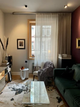 Ein Raum voller Charakter: Sanftes Tageslicht trifft auf tiefe Farben und persönliche Details – ein Ort, der Geschichten erzählt.